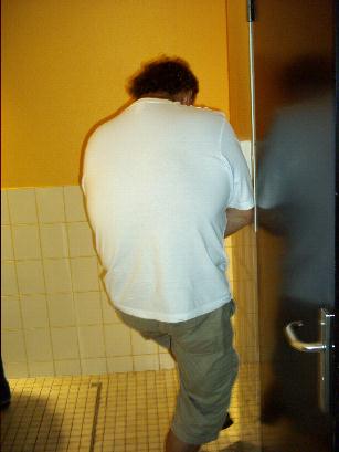 One of the disadvantages of drinking and eating and then going to the loo can be that eternal problem that sometimes happens to men.